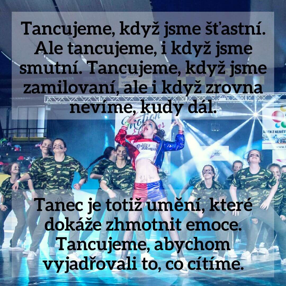 Tancujeme, když jsme šťastní. Ale tancujeme, i když jsme smutní. Tancujeme, když jsme zamilovaní, ale i když zrovna nevíme, kudy dál. Tanec je totiž umění, které dokáže zhmotnit emoce. Tancujeme, abychom cítili a vyjadřovali to, co cítíme.